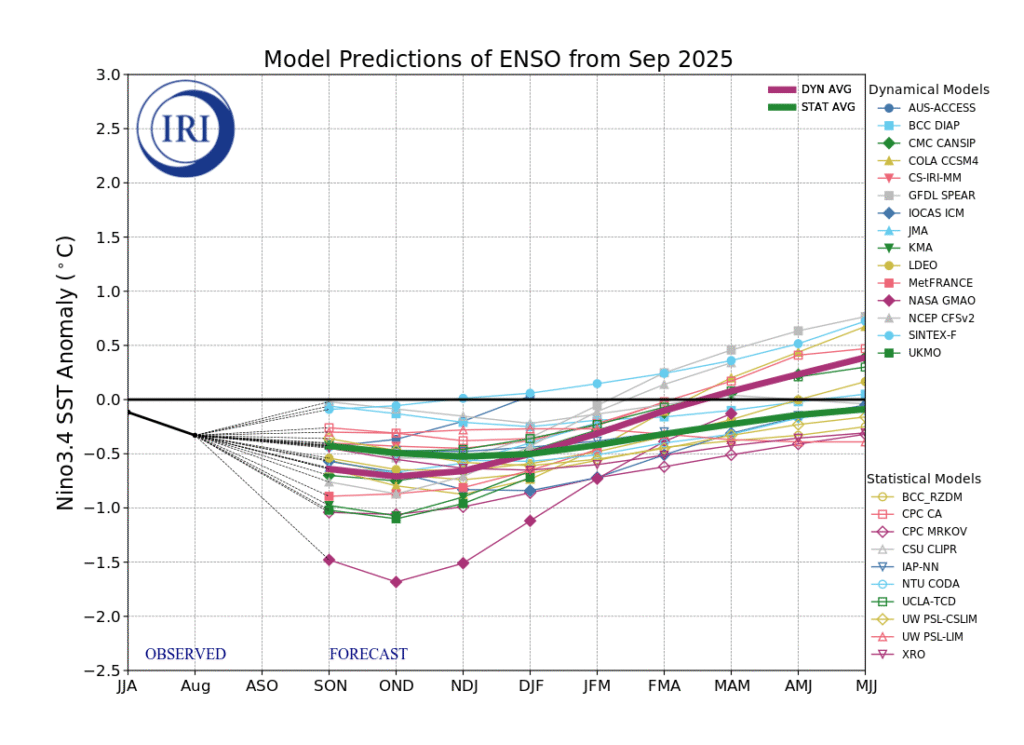 IRI. PREVISÃO ENSO. Columbia Climate School: International Research Institute For Climate And Society, 2025. Disponível em: < https://iri.columbia.edu/our-expertise/climate/forecasts/enso/current/ >, acesso em: 16/10/2025.