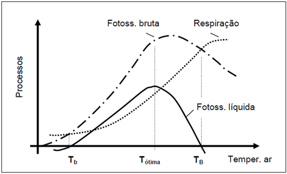 Figura 2. Metabolismo das plantas e temperaturas cardeais: mínima basal ou base inferior (Tb), ótima (Tótima) e máxima basal ou base superior (TB).