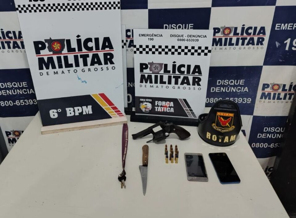 Equipes de policiais militares do 6º Batalhão apreenderam em flagrante dois adolescentes e prenderam um homem, na noite deste domingo (12.4), em Cáceres (a 220 km de Cuiabá). Eles são membros de uma facção criminosa e estão envolvidos em homicídios no município. Os militares da Rotam e da Força Tática recolheram uma arma de fogo, 16 munições, uma faca e uma motocicleta.
