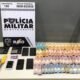 No imóvel, também foram apreendidos materiais ligados ao tráfico de drogas, incluindo três balanças de precisão, dinheiro em espécie, celulares e chips telefônicos.
