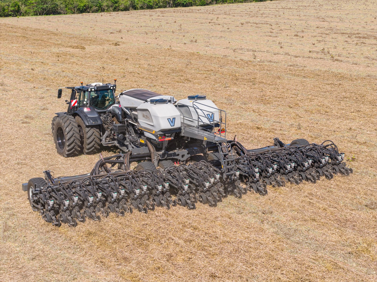 A plantadeira também traz avanços nos sistemas já reconhecidos da Valtra. O sistema Weight Transfer é responsável para redistribuir o peso do chassi central para as asas laterais, reduzindo a compactação do solo e melhorando a profundidade de semeadura.