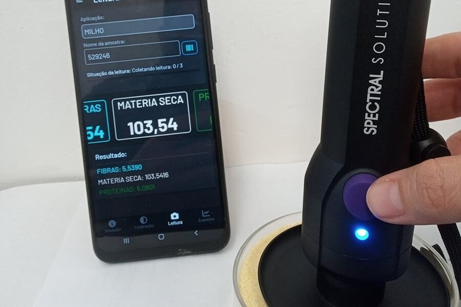 Foto: Sandra Brito/ Embrapa Cientistas da Embrapa Milho e Sorgo (MG) e da empresa Spectral Solutions desenvolveram um método portátil de avaliação da composição química de grãos moídos de milho...