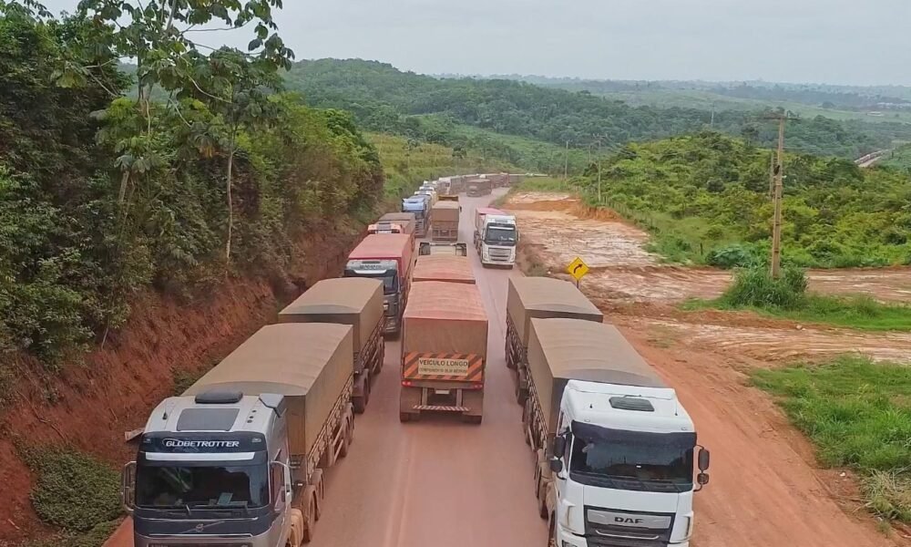 As más condições da estrada que dá acesso aos terminais portuários de Miritituba, em Itaituba (PA), têm provocado longas filas de caminhões carregados de soja e...